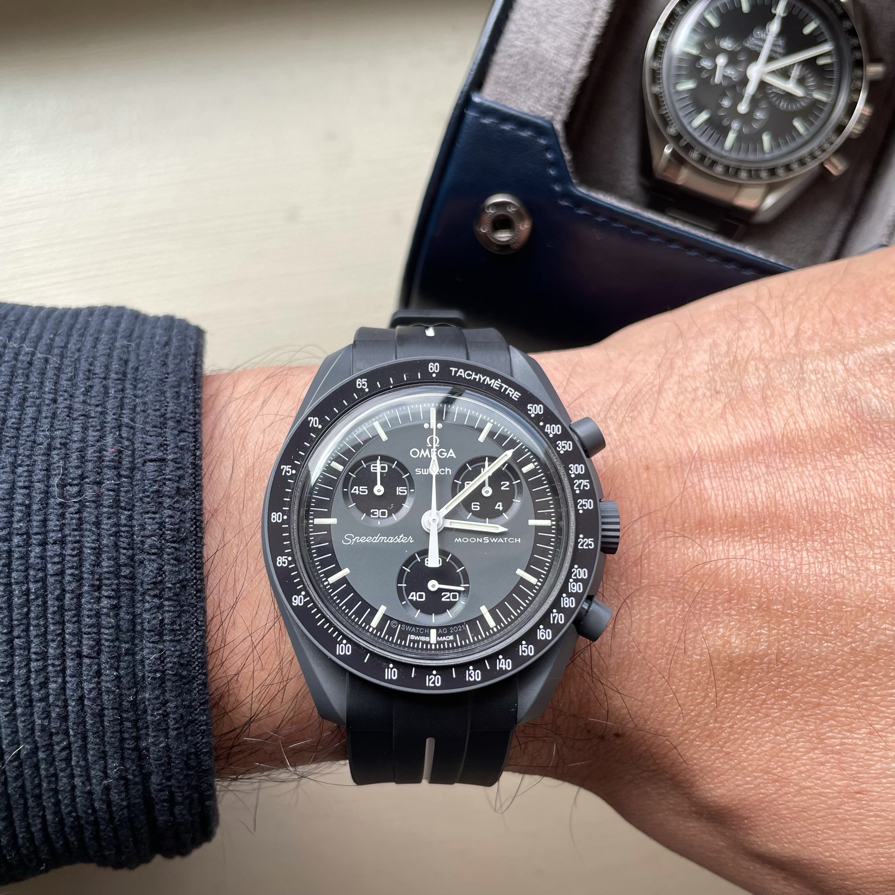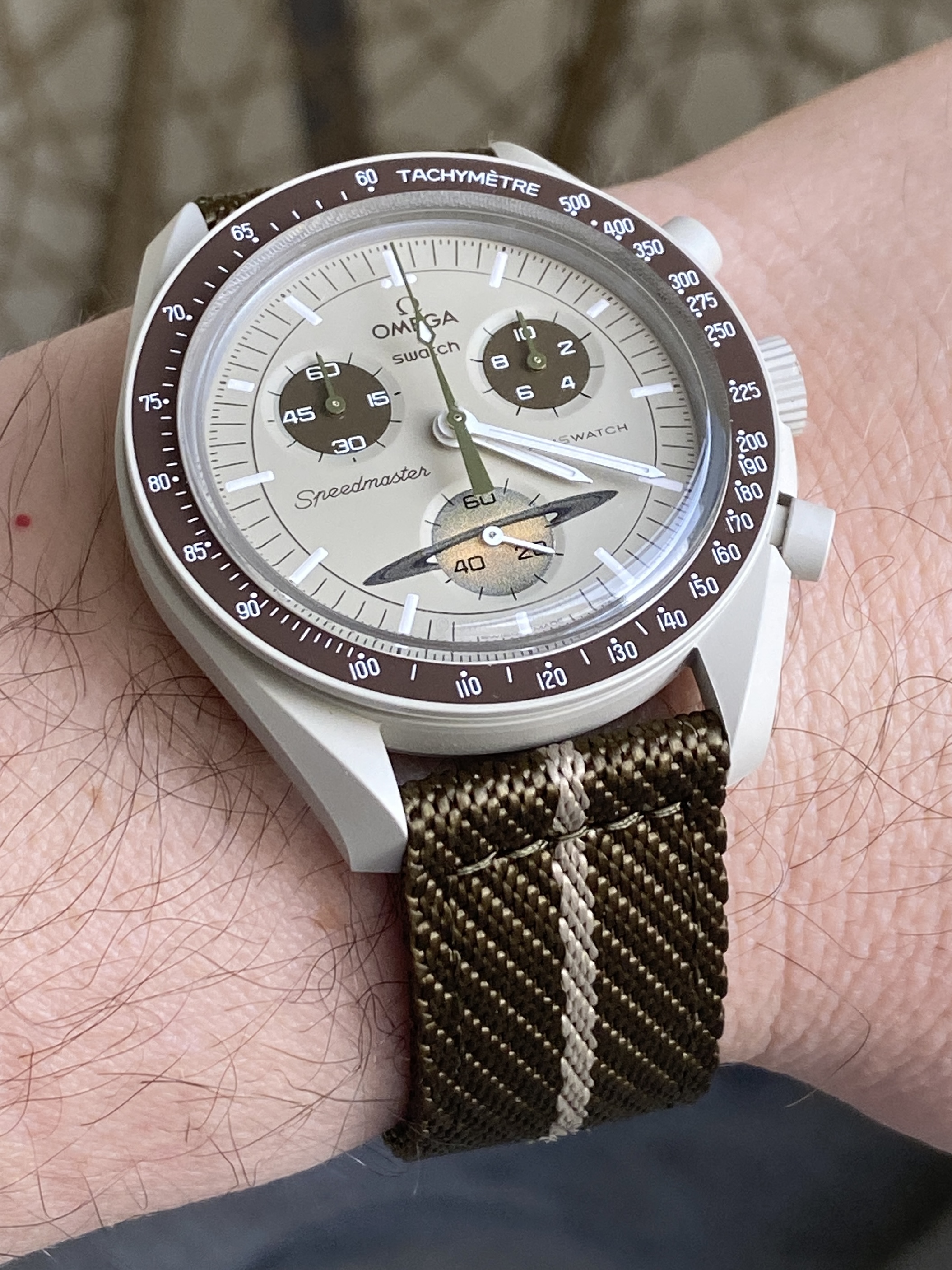 The watch is soooo light. But the strap is really stiff and bad, plus it screams "I am Omega Speedmaster" even if it isn't. If you have some good ideas of alternatives for this particular mission - let me know.