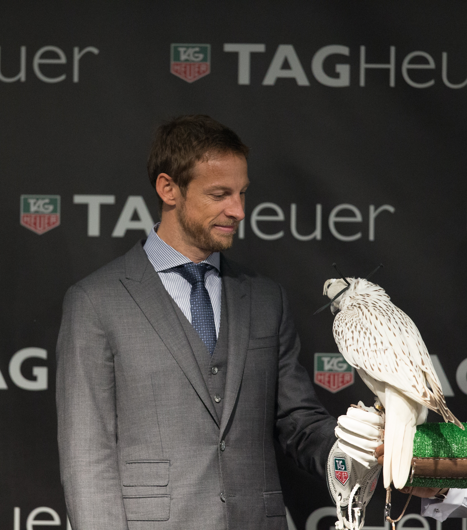 TAG Heuer, the Swiss avant-garde watchmaker, known worldwide for its high precision watches and chronographs, celebrated the last race of the Grand Prix season in Abu Dhabi in style when Mclaren Mercedes Formula One superstar and TAG Heuer brand ambassador Jenson Button showcased an exhilarating show with two Gyrfalcons from Abu Dhabi Falconers’ Club. The celebration also witnessed the star driver launch the brand’s latest innovative timepieces.