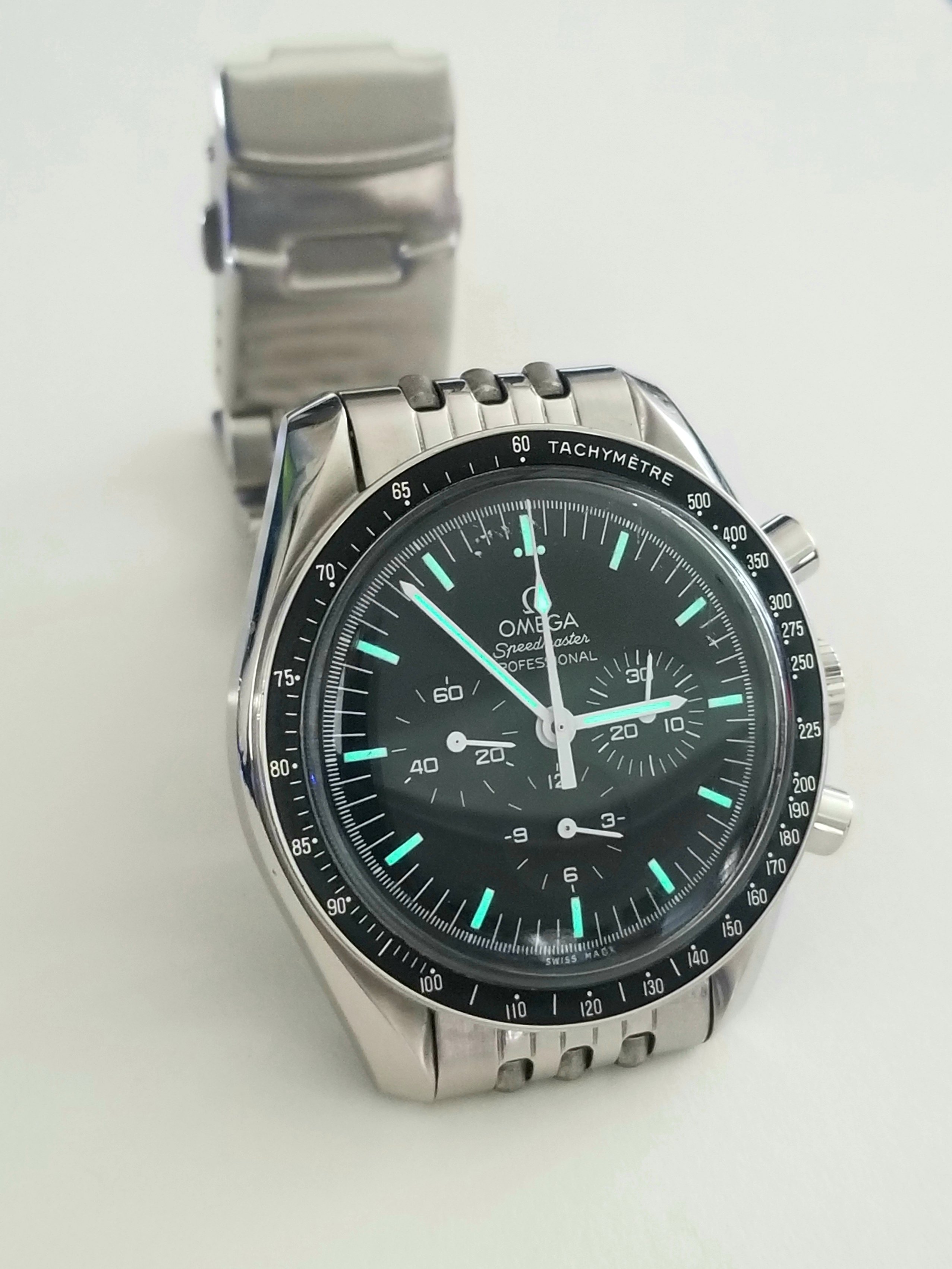 ·I distinctly remember the discussion…but not the specific date…I believe it was maybe 1997, 1998…or maybe 1999. OF member @gearjockey was over at my house and he asked me what watch I aspired to own. I told him that I was happy with my Longines Hour Angle reissue [I still have it]. When I asked him which one he aspired to own, he told me it was the Speedmaster Moonwatch and he provided some background on it…which was cool because I didn’t really know anything about Moonwatches. I do remember thinking that the plastic crystal [on a Moonwatch] didn’t seem very good…it seemed cheap and crappy. Over the years, the Moonwatch gradually grew on me…and then I received my first 1861 Moonwatch for my 51st birthday in 2015. It was new and it was in the big presentation box with all the cool stuff…and the inside of the presentation box smelled FREAKING AMAZING…and it still smells FREAKING AMAZING!