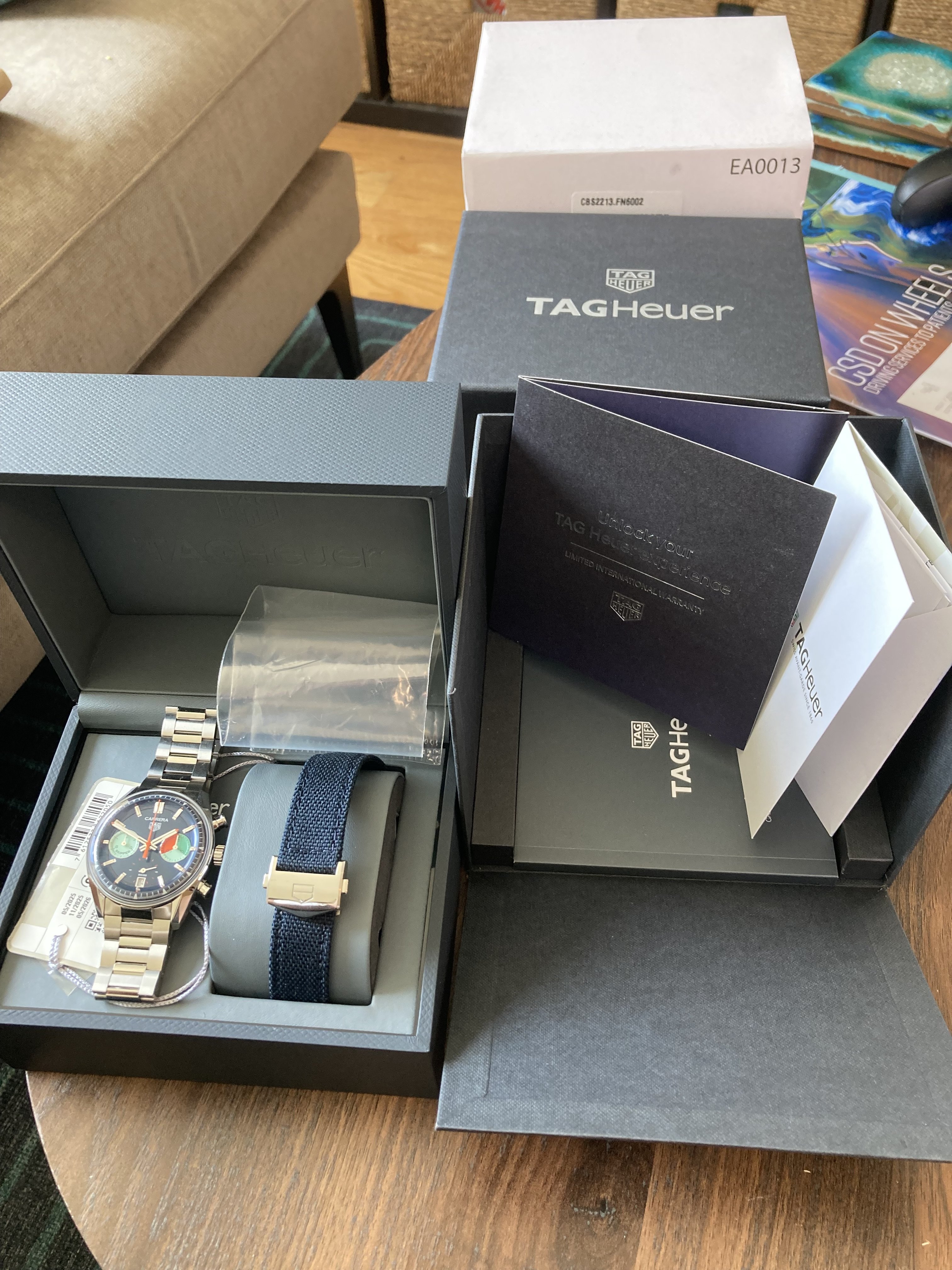 Full set bought on launch day. Watch is like brand new, no marks. Original sailcloth strap was worn once (at the official launch party in NY!) but is otherwise brand new.