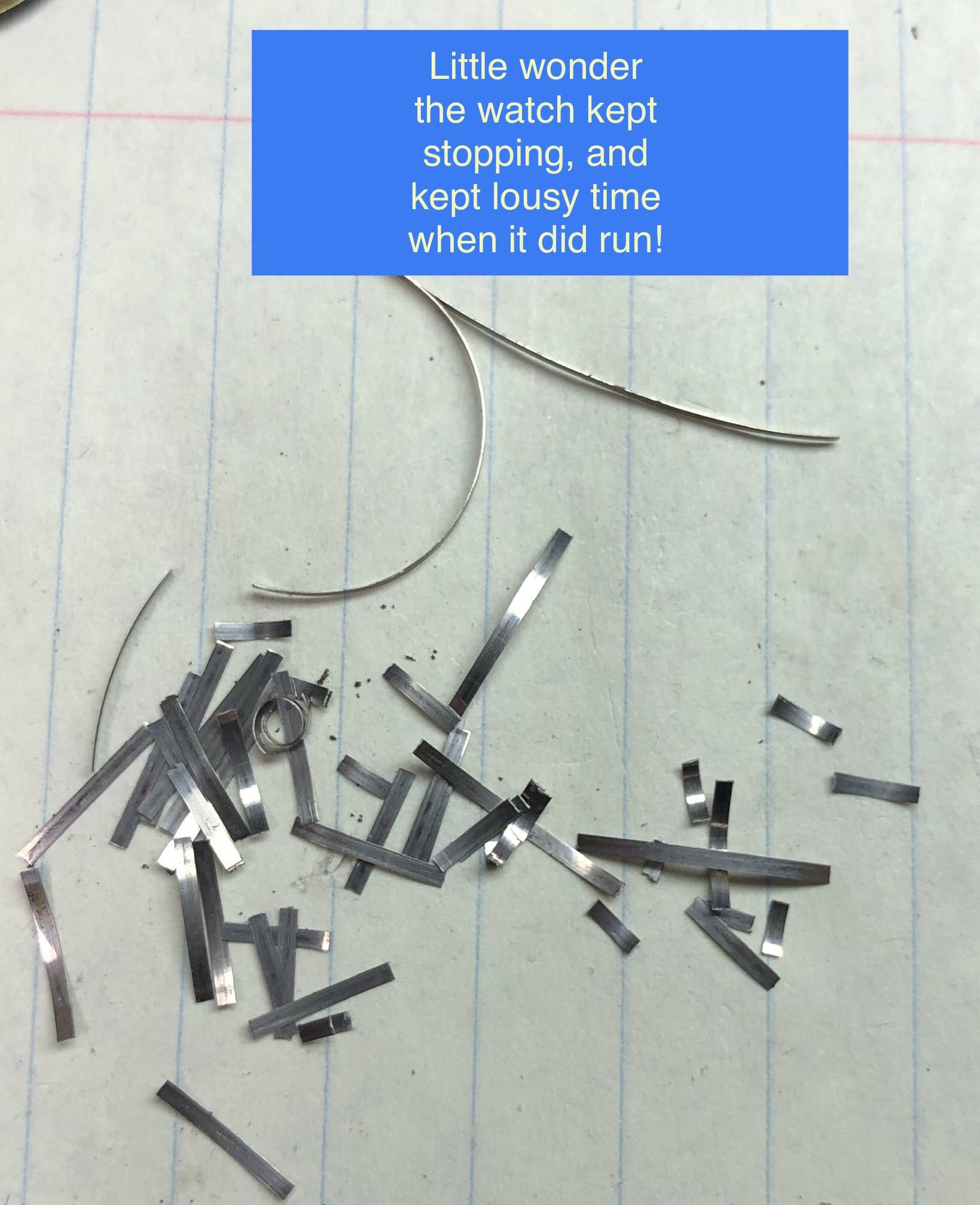 ·I have been cutting my teeth on various vintage watches as I learn my way around watchmaking. I thought it might be fun to share some of the more 'interesting' discoveries left by a previous watchmaker.