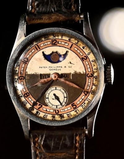 Title: An exceedingly prestigious, historically important and previously unknown platinum triple date wristwatch with small seconds, moon...