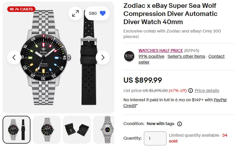 Posts 6,591 Likes 26,623 Scarecrow Boat ·Oct 11, 2024 Starting October 18, 2024, the Zodiac x eBay Super Sea Wolf Compression Diver will be available for purchase at USD 1,695 exclusively on eBay.com. This website may earn commission from Ebay sales.