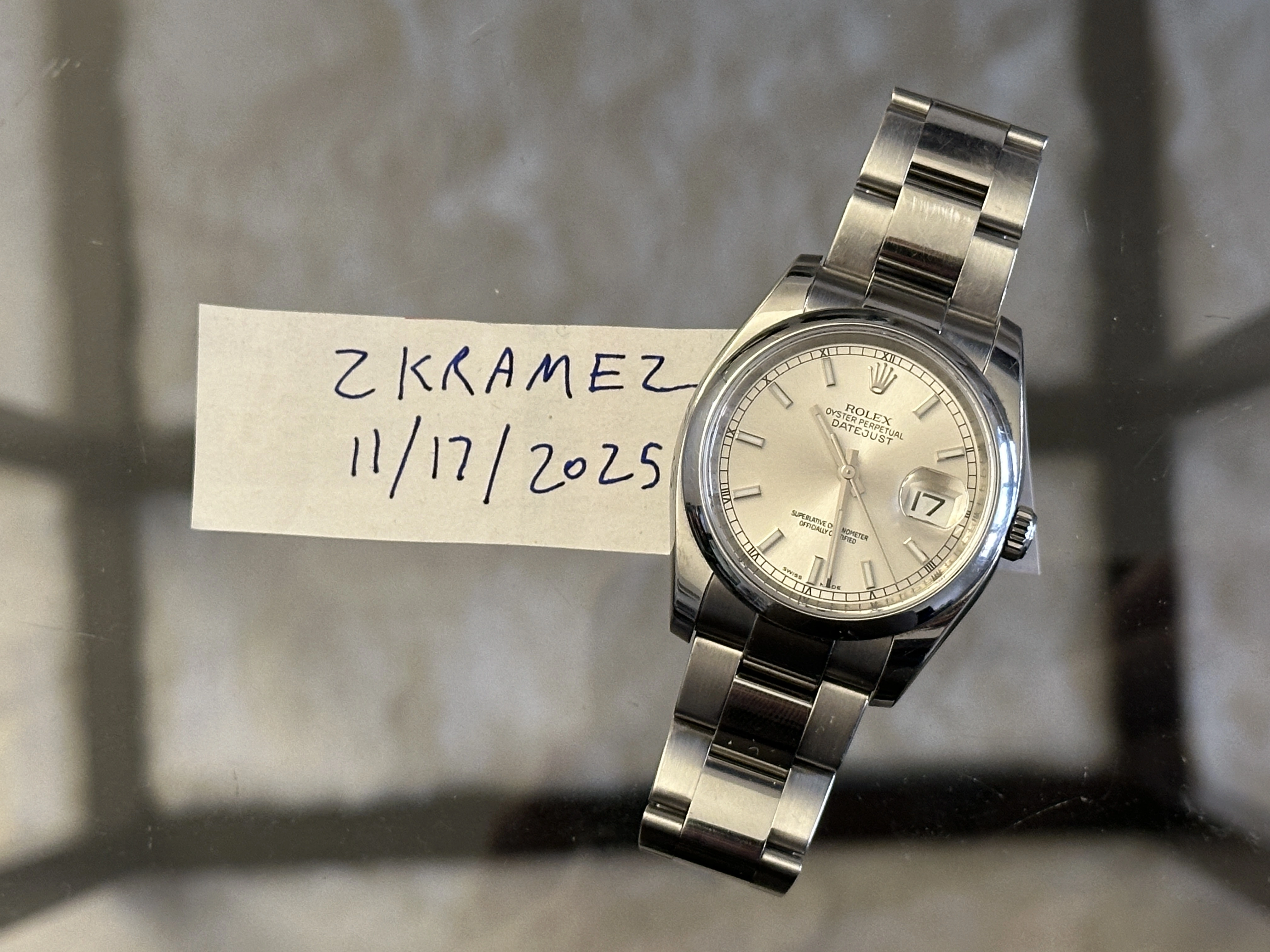Posts 208 Likes 201 zkramez ·Mon. 10:31am Here for sale is my Rolex Datejust 116200. It is 36mm in size and will fit a 6.75 inch wrist. It has a V serial so that dates it to about 2009. It has 10 links so it is 2 short. Watch only. No box. No papers Runs fantastic as shown in photos.