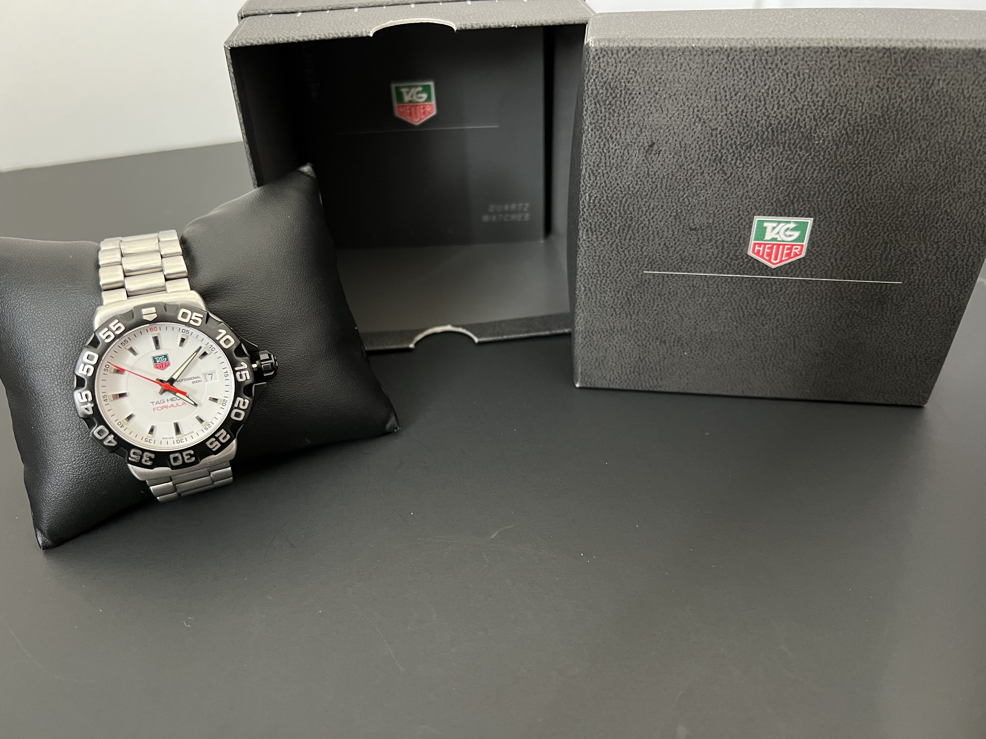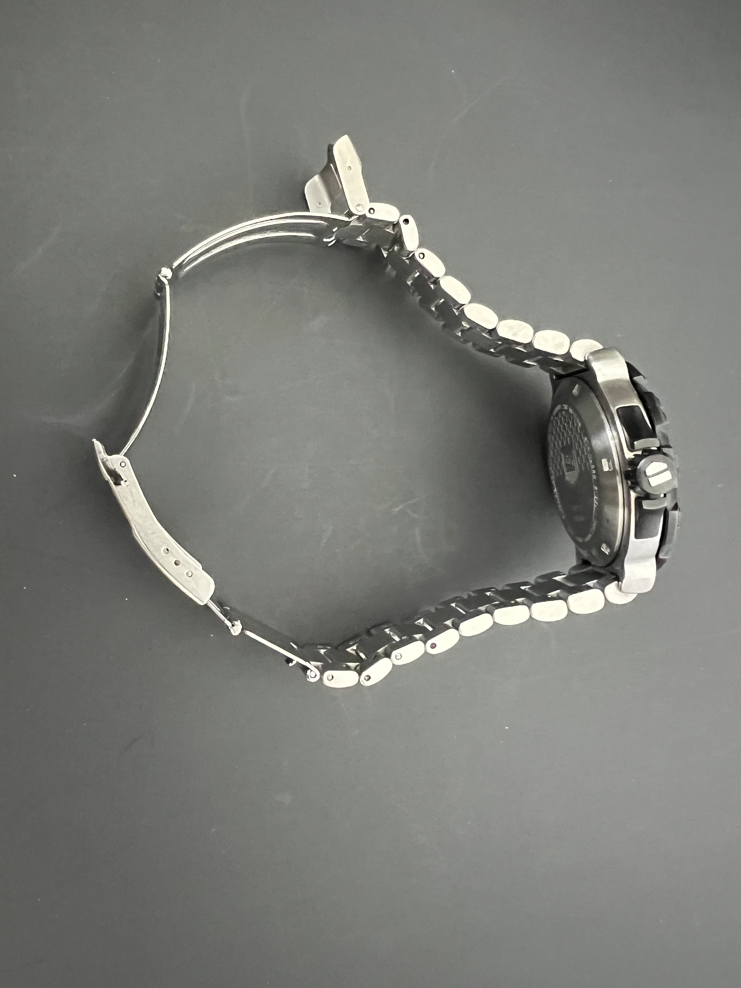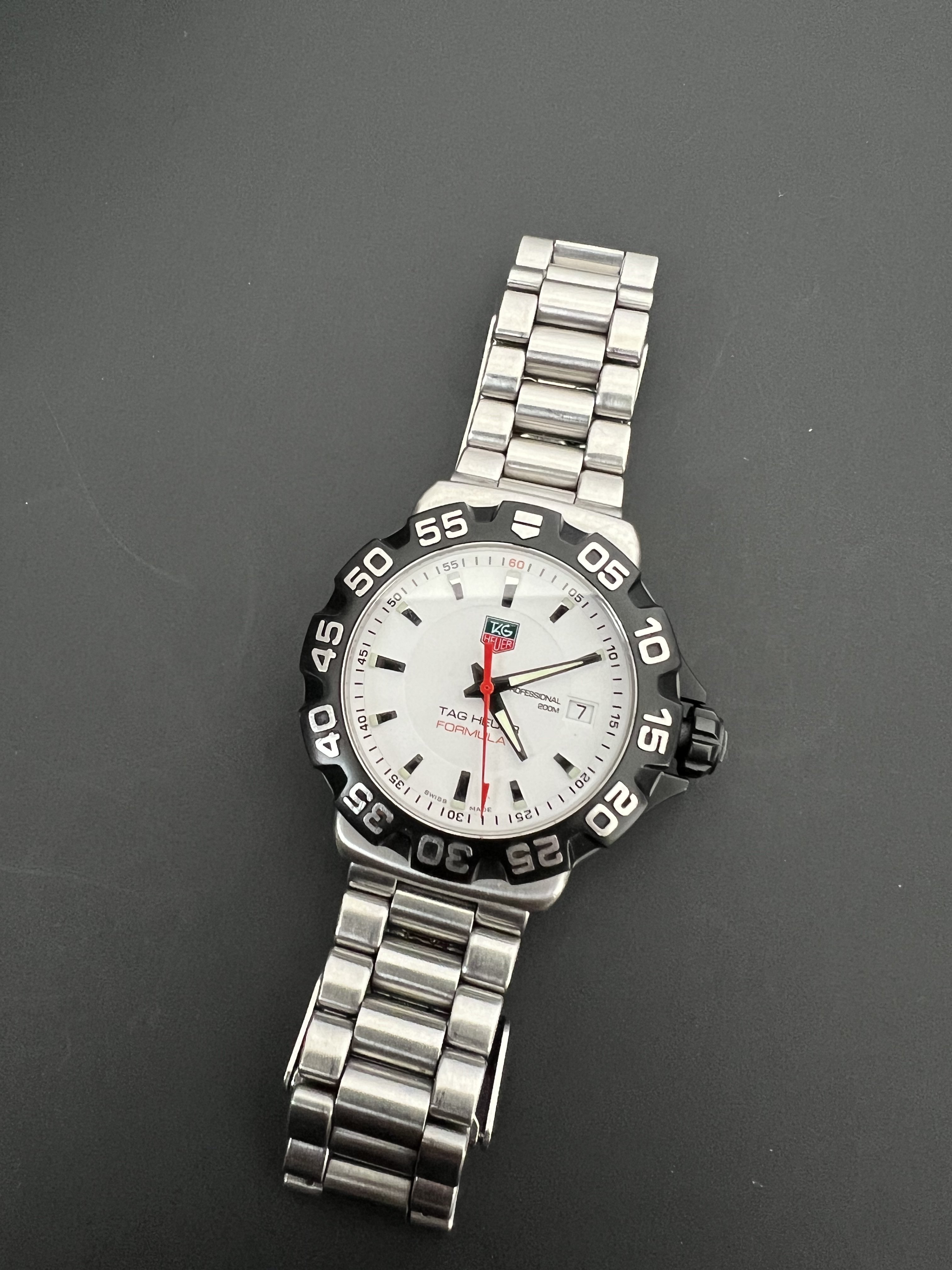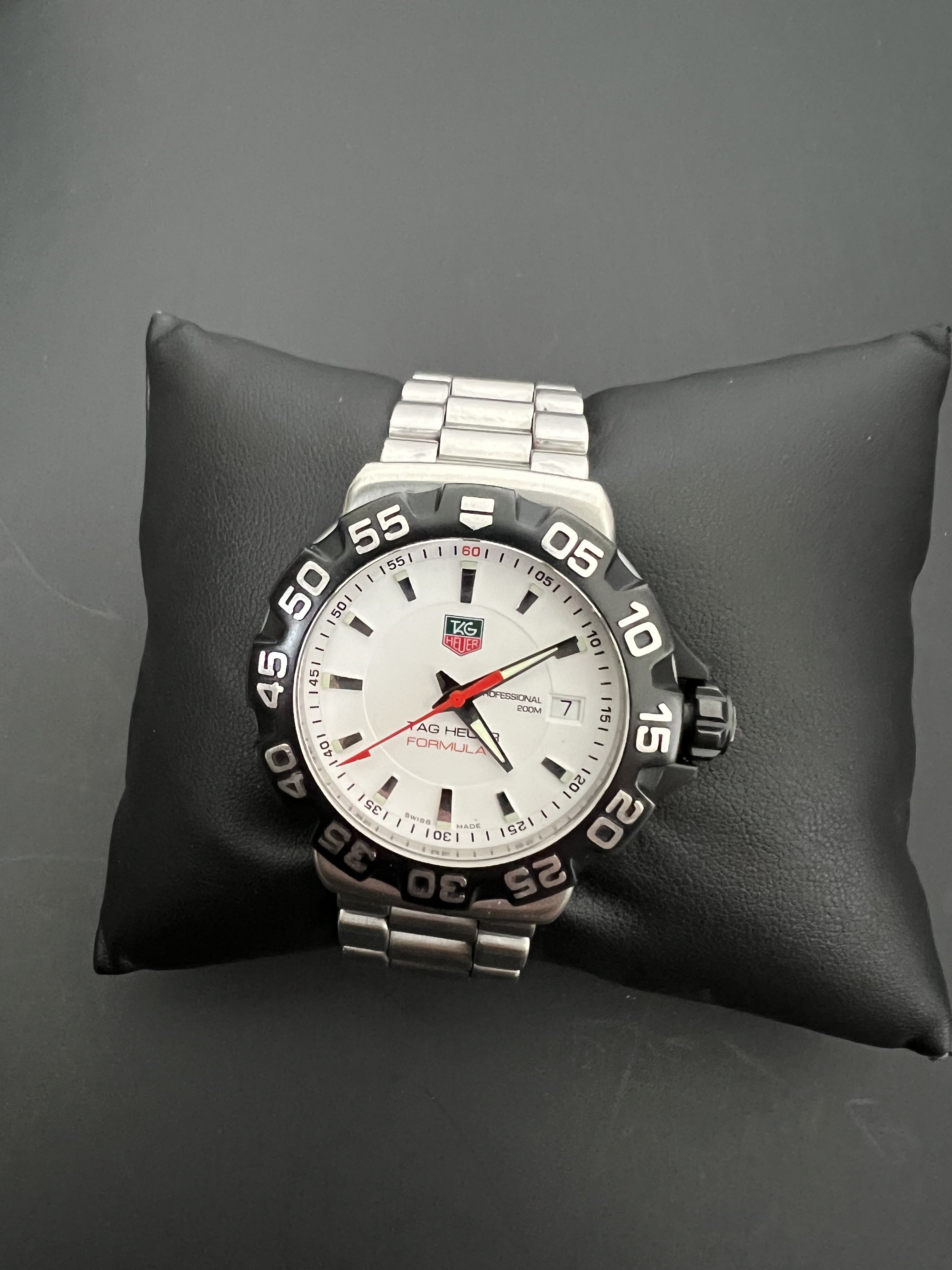 Very nice working 41mm Tag Heuer Formula 1 Professional 200M with the deployment buckle and comes with the manual and a box. This is short on links by 2 but still fits my wrist very comfortably. These are currently going for over $1,000 so it’s a great deal. I can deliver local to Indianapolis as well.