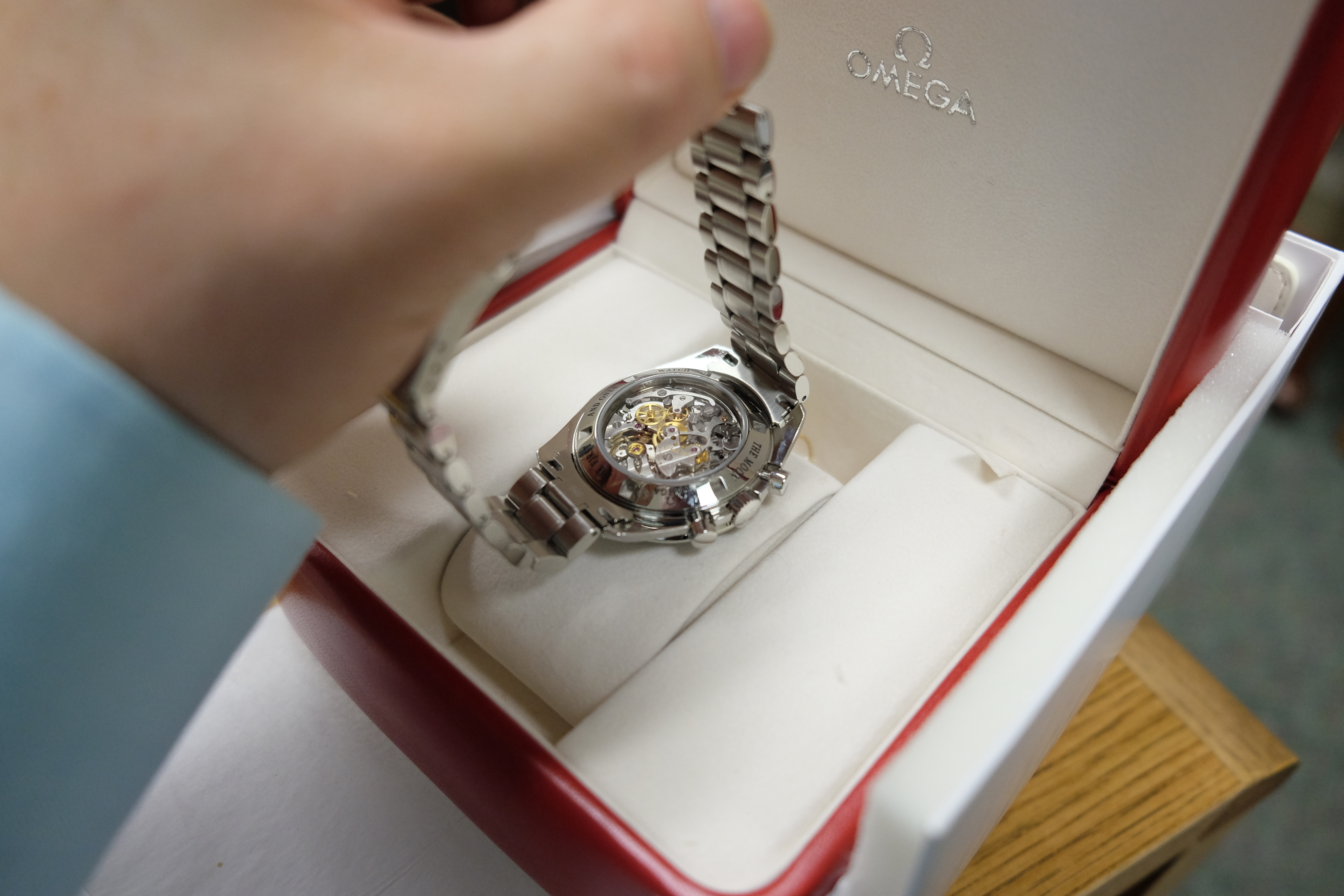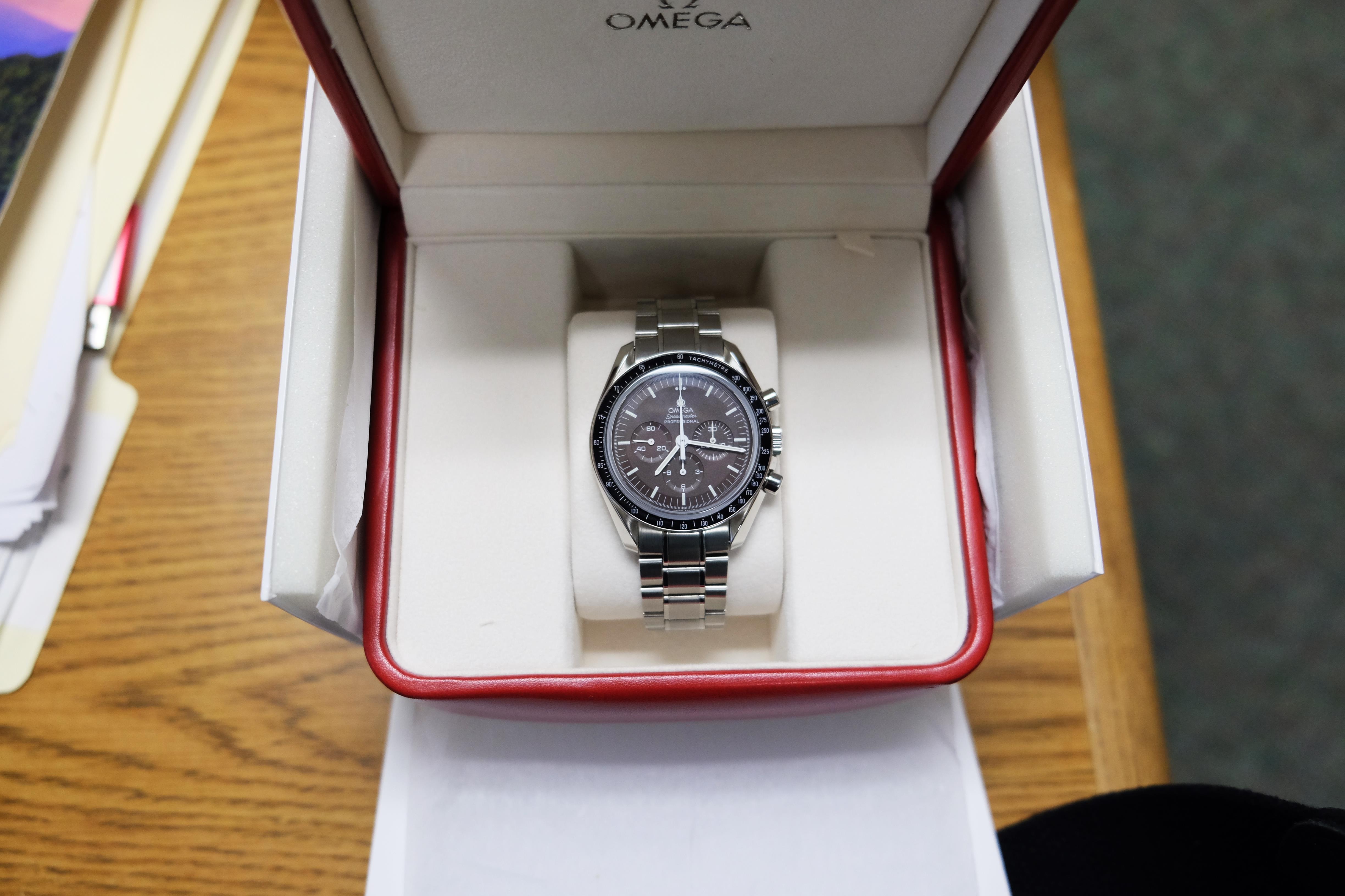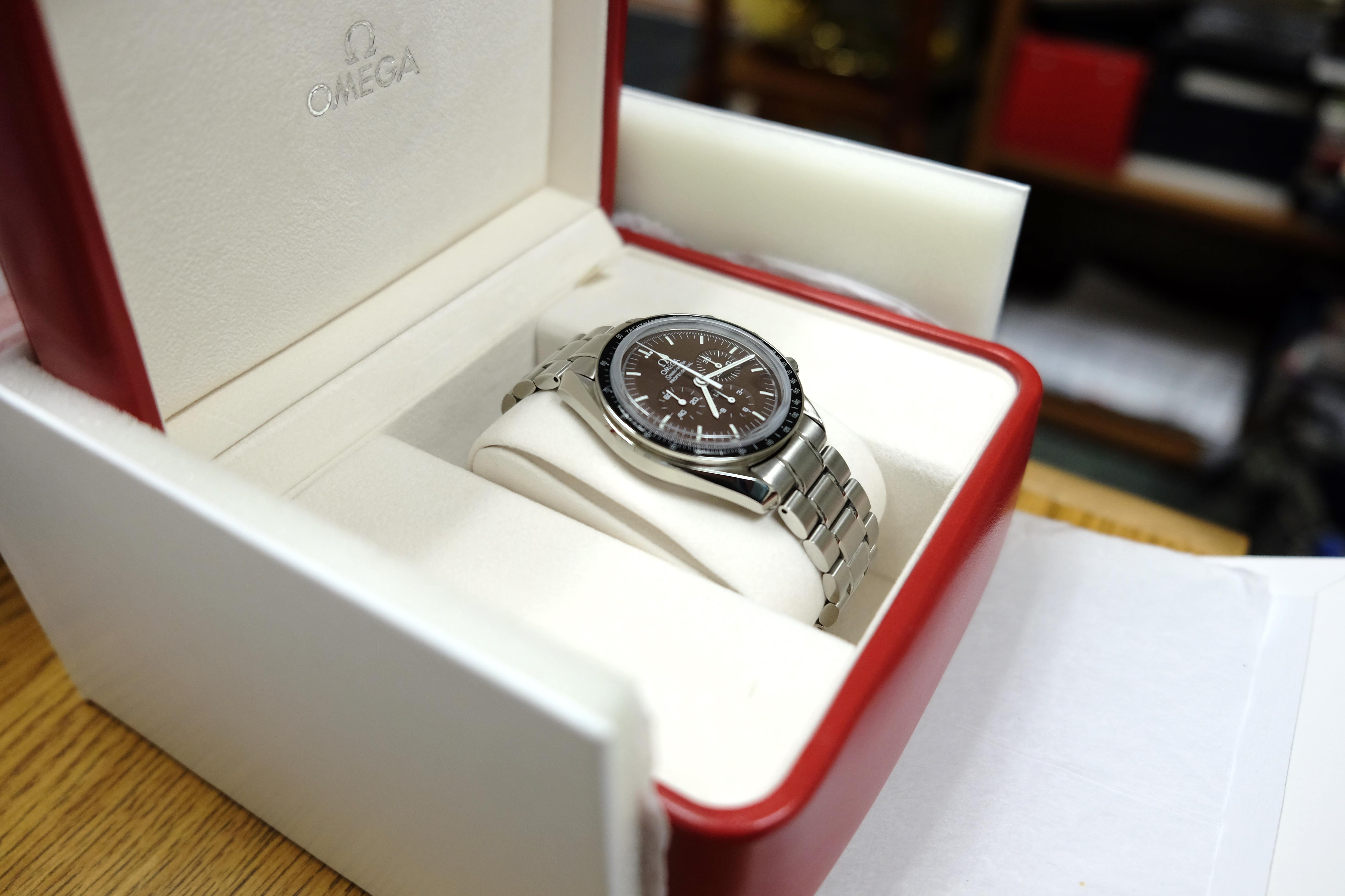 Comes with all as new: Outer box, red case, hang tags, manual, Omega cards, links etc. Sorry, DOF was a bit narrow on a few pixs. Absolutely stunning piece!