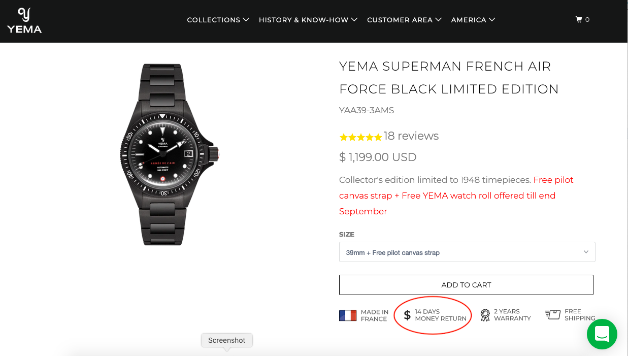 Please note: I say this as a satisfied Yema customer and proud owner of the Superman Bronze LE (blue dial)... I have no problem with a no-return policy; I just think it's very misleadingly presented and potential customers should be aware.