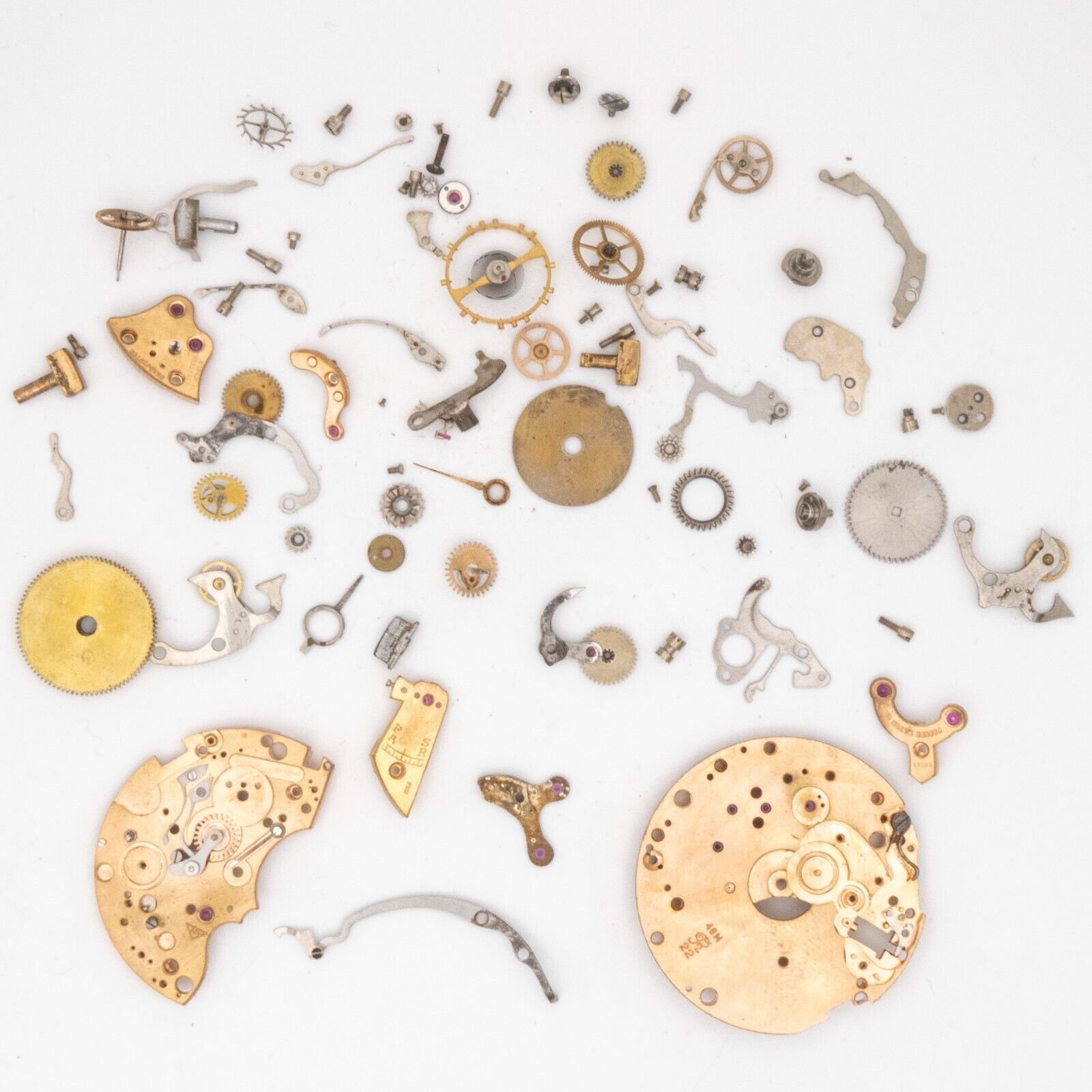 Mostly screws. I think these are landeron bridge screws. The motionworks was not installed as there is no center wheel. Perhaps someone else though that barrel might fit.