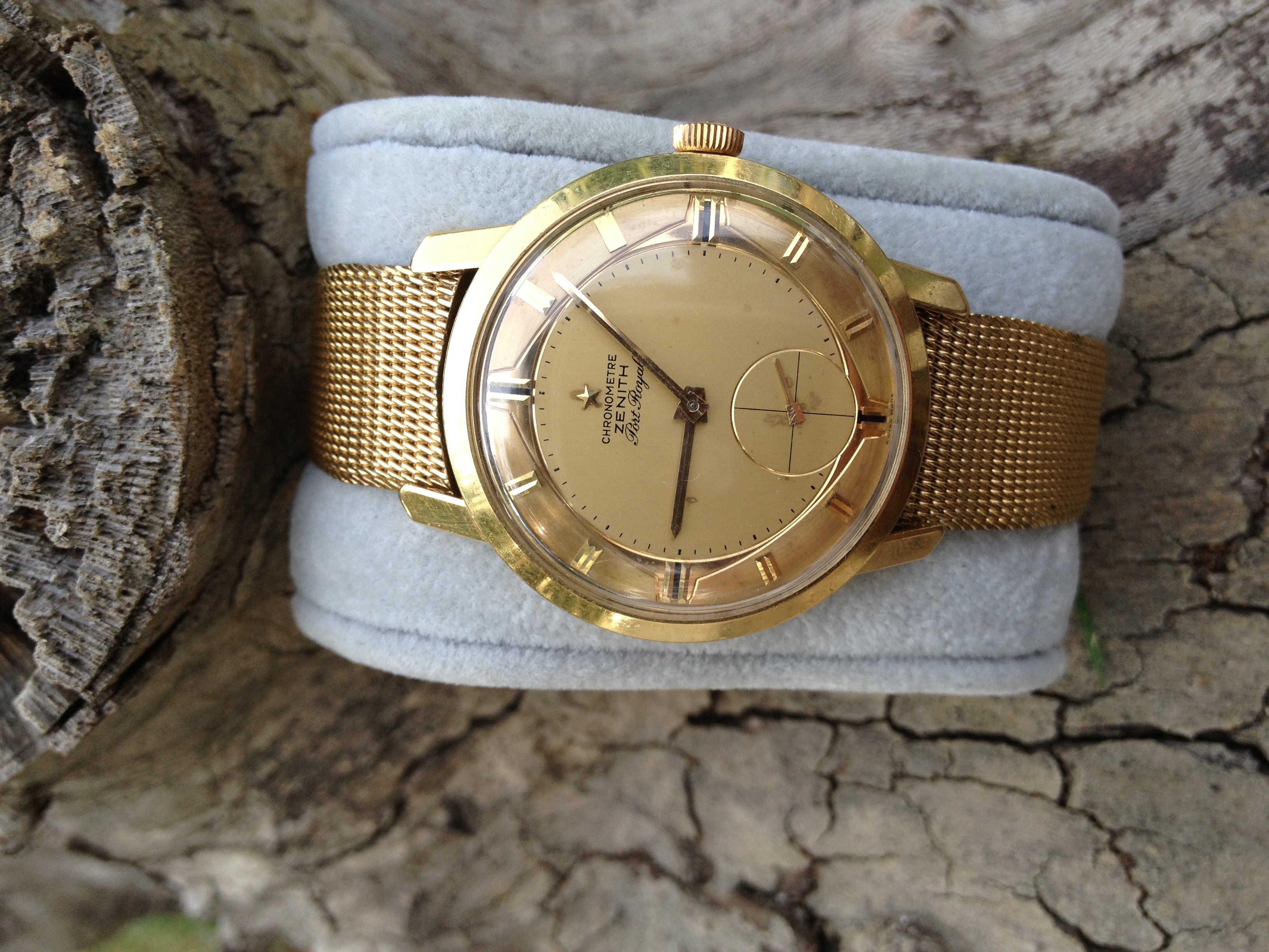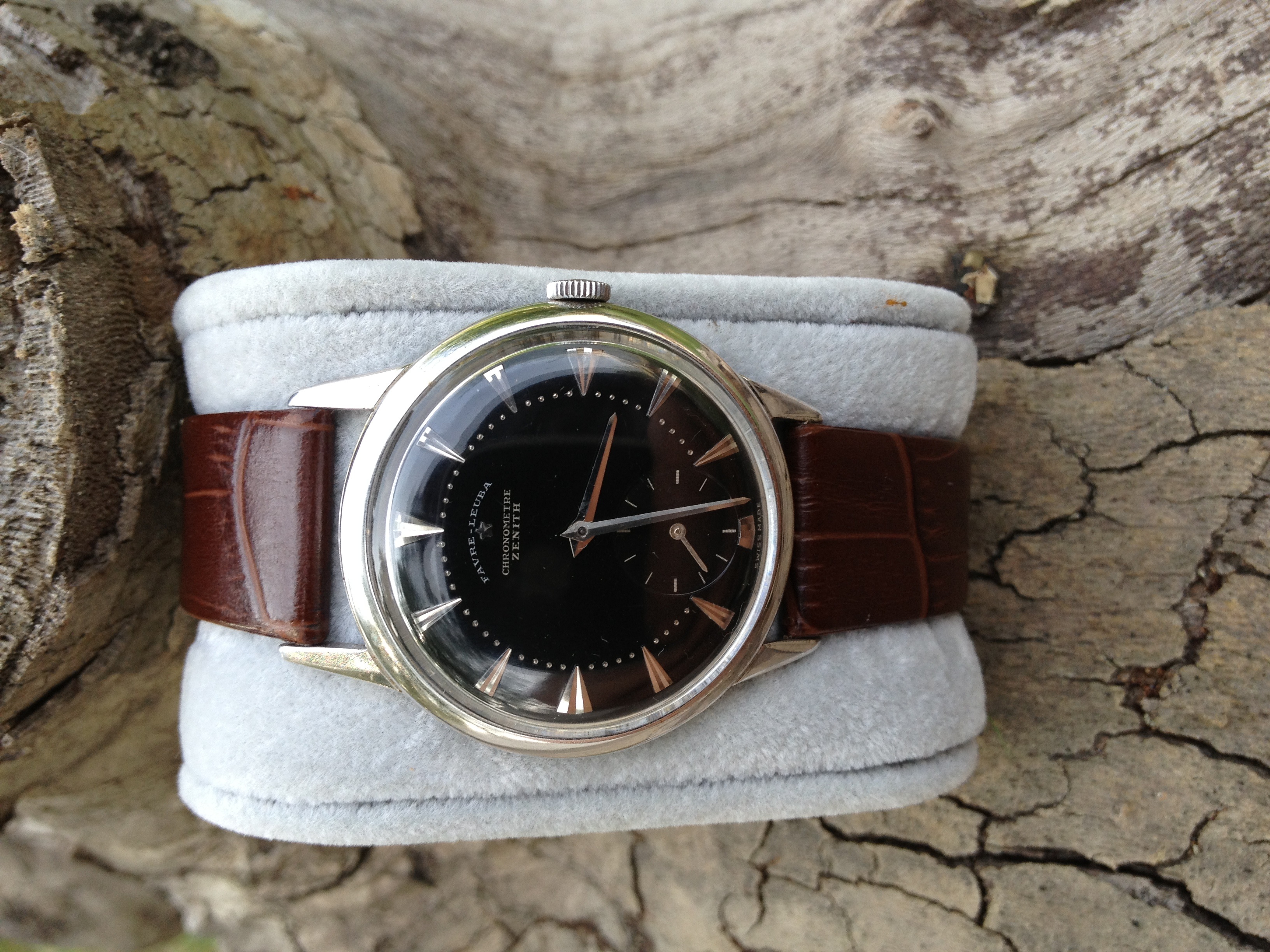 That is indeed a Zenith Greatest Hits album. Well done, and great to see you here. The Port Royal 135 looks terrific on that mesh band. And the Favre Leuba Cal 135 is gorgeous. A minor deduction from the score of the A386 for factory replacement dial and hands, but it's a stunner too.