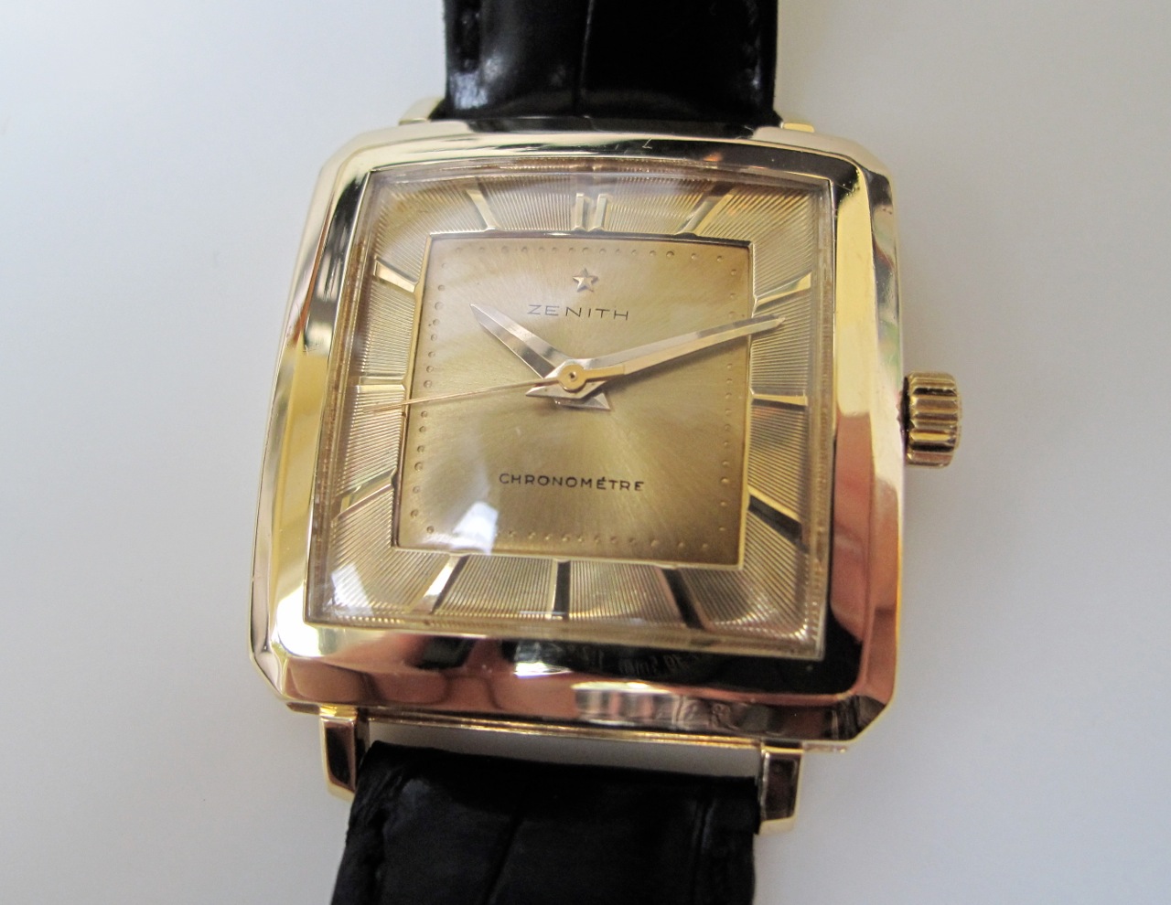 ·Well this is a bit anticlimactic, after this and this (scroll down to the beautiful square golden thing at the bottom), but allow me to present... the shiniest of the three gold Zenith references from the 1950's posted on this forum today.