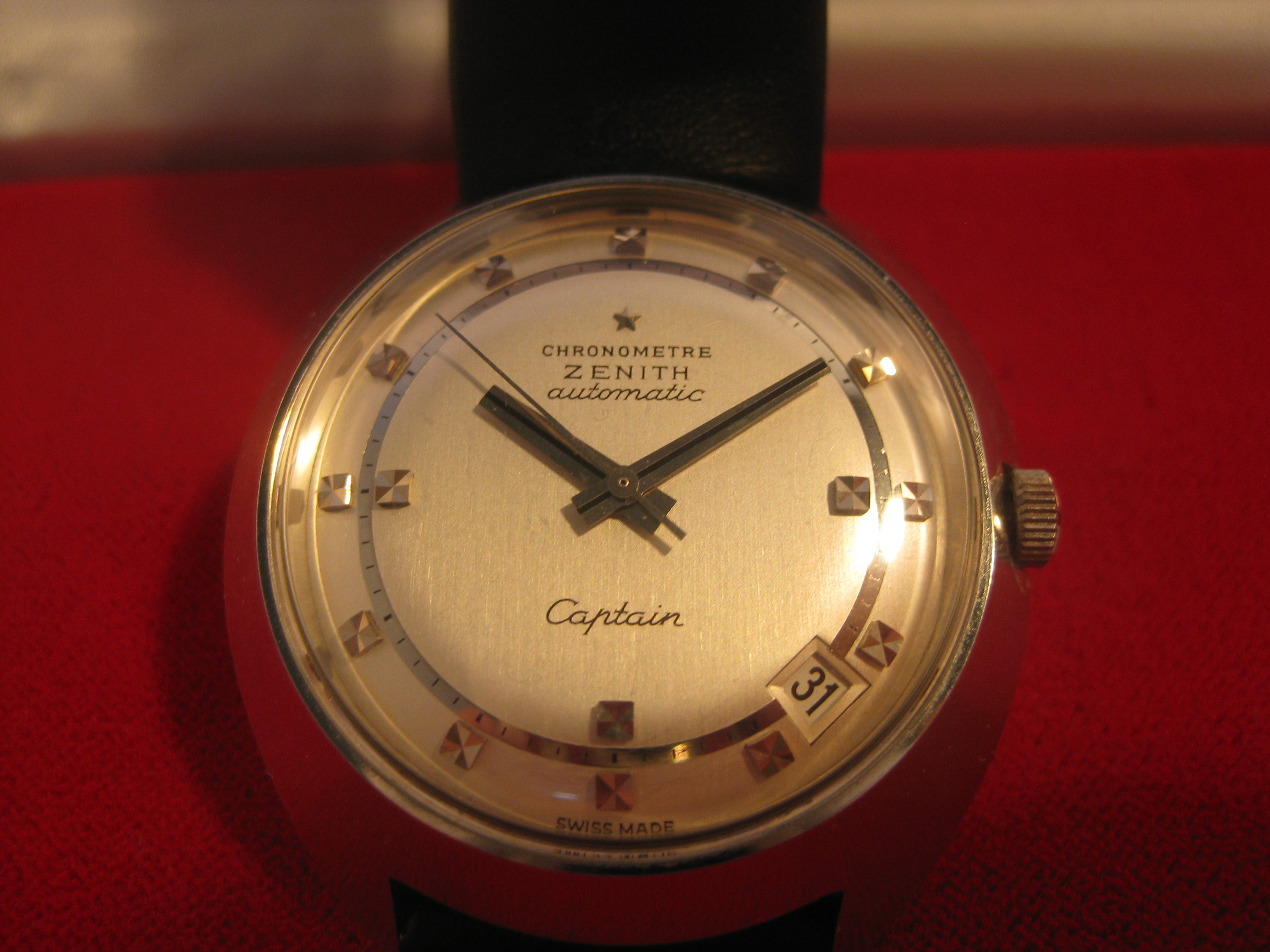 The 1959 Captain Chronometre, Zenith's answer to the Omega Constellation de Luxe, in highly reflective 18K gold.