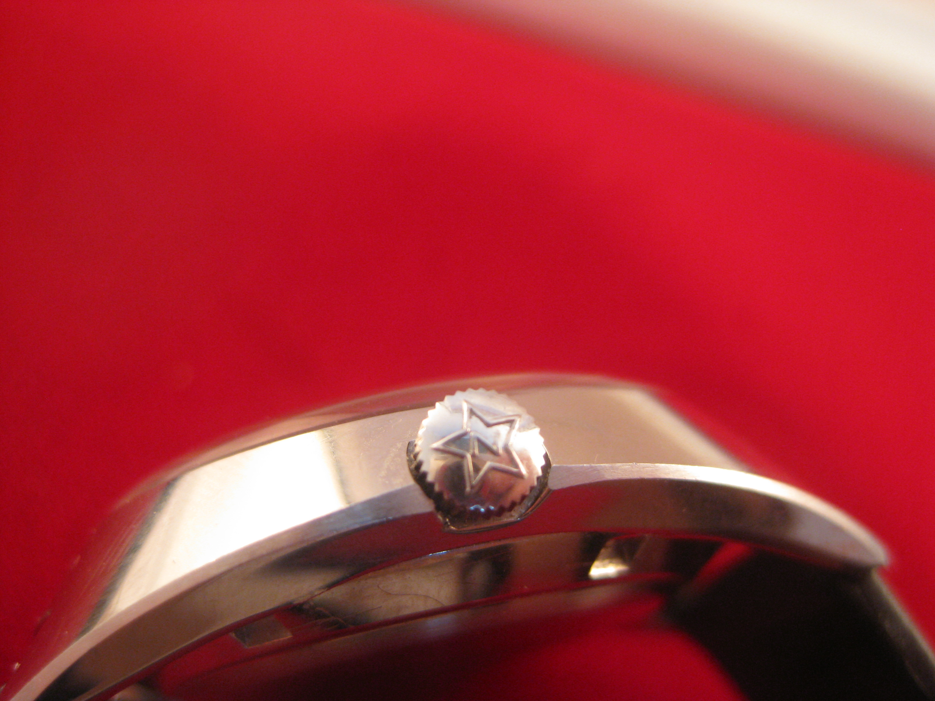 And on the back, the mysterious Z-that-looks-like-an-hourglass-inside-a-ship's-wheel-or-balance-wheel-or-something logo... only seen on watches of the Captain model line... Zenith's answer to the igloo under a starry arctic sky or whatever it is on the back of those Connies 😉 . There appears to be some residual black pigment within that Z; perhaps this was originally painted. Come to think of it, that crown looks a bit like the lug nut one might find on a Connie... and, unlike most gold-tone Zenith crowns, I suspect that this one might be solid 18K, as the 'Z' is quite worn but I don't see any steel underneath.