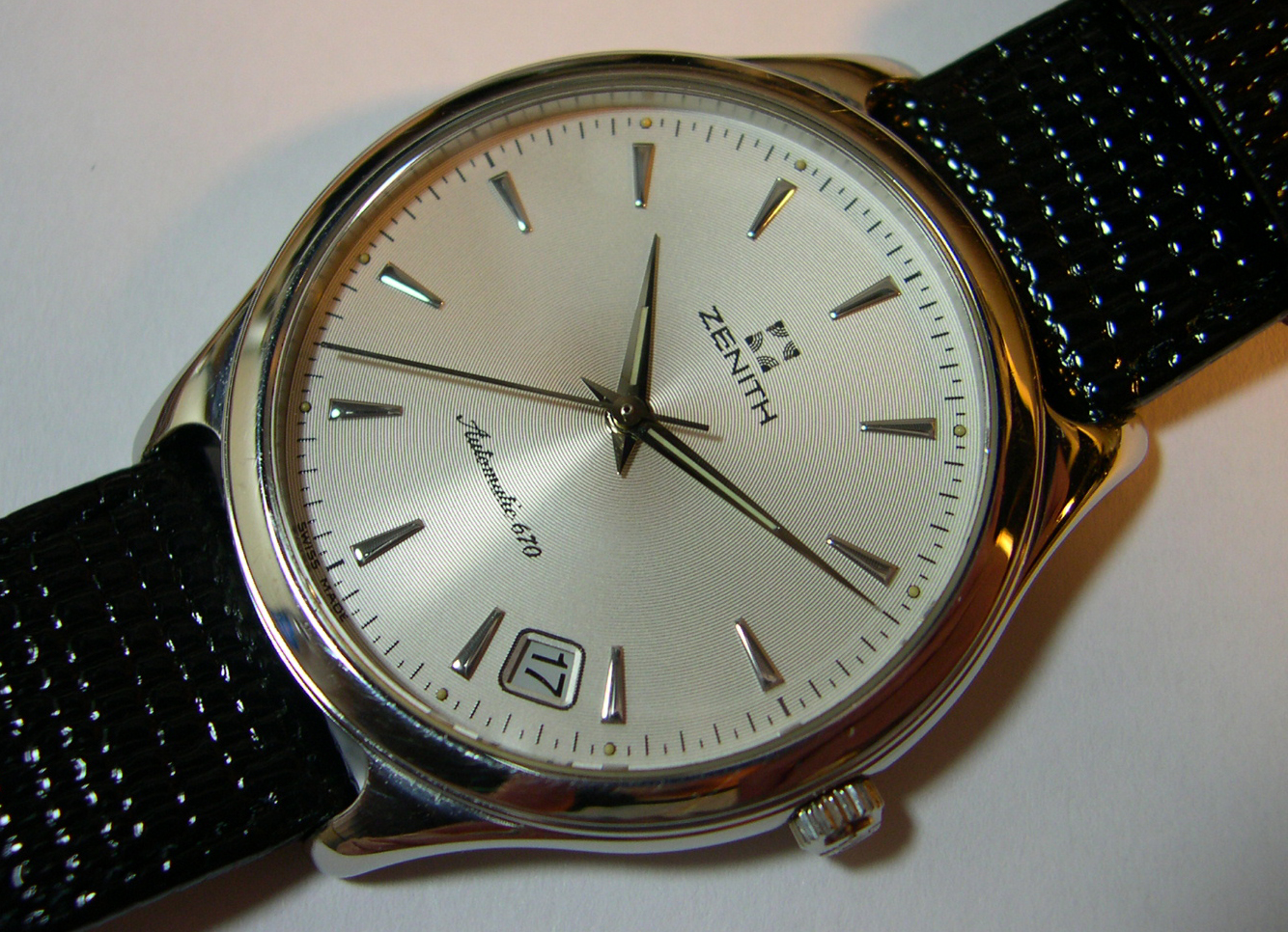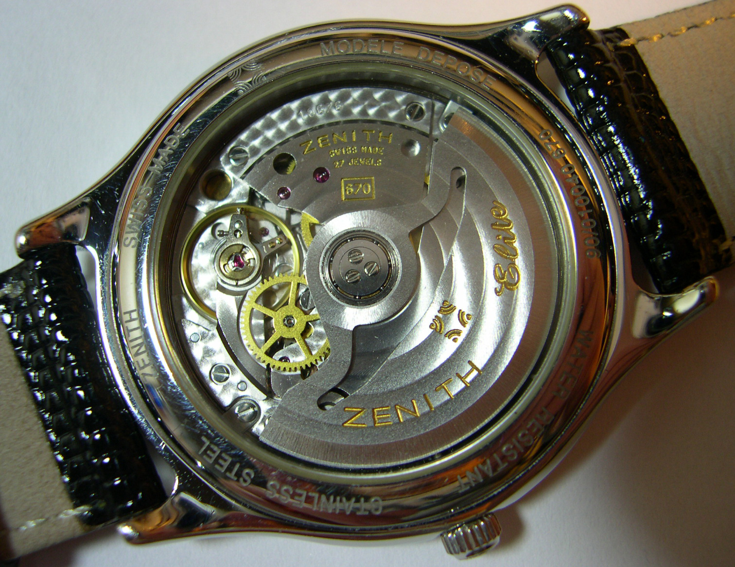 Totally in house, launched in 1994 exactly because Zenith wanted to stop having to use ETA movements in its three handed watches. It won some awards at its debut, I believe. Its a very good piece of work, but remains relatively unklnown in the shadow of its famous older brother, El Primero. You'll note that in versions without central seconds, the small seconds hand is at the 9 o'clock position. Rumor has it that the Elite was created as a new platform for a whole range of movements, including chronographs, hence that location. In the end, though, Zenith decided El Primero was too valuable a property to mothball.