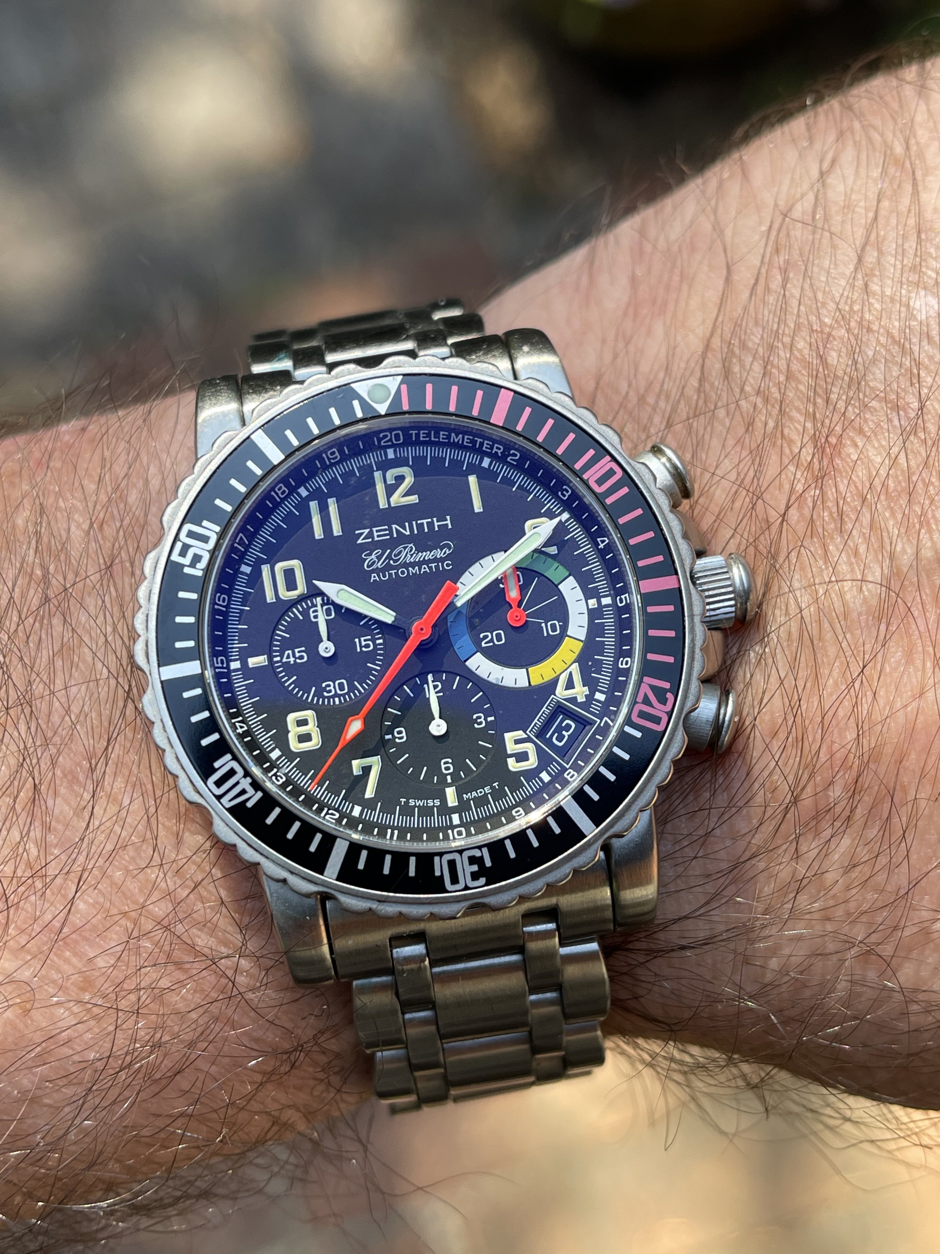 路路Pratts! Will I B******S!!!These have always caught my eye, but have never pulled the trigger for one reason or another. Lately though, it is climbing back up the the aquisition list. As the release of a "new and improved" (and IMO over-large) version now on the market, I've been looking at these again. 馃槜 The El Primero is a classic movement, and this reference seems not a bad place to start - I do love the look of them. They seem to be selling in the low-mid US$3K range on the 'bay, though many are listed higher.