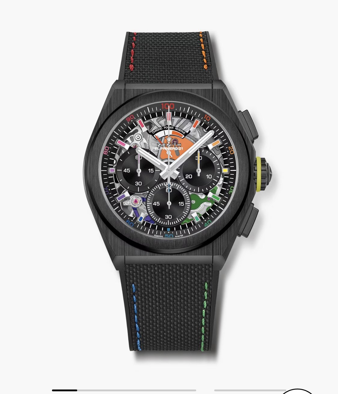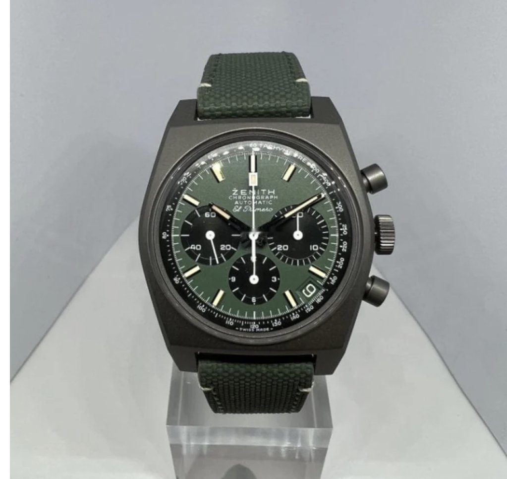 Hi - I'm new to this site and saw Mick Tock's Mango so I wanted to show off my new acquisition. I am and have been an Omega (SMP and 60's Automatic) person but I could not resist this Rainbow "Mango". I have wanted a Zenith Chrono, El Primero for years and while looking for an Omega Chrono I ran across this one. I am not one for bright dials and am usually conservative in watch styles I like but the design seems well balanced. It even came with the original receipt. Purchased new in 2013, sized and unworn until I snagged it off an auction site. Been wearing it 5 days now and I really like the proportions and the way it fits me. The fit and finish are top notch. It looks so good I almost don't want to wear it. But heck, that's what it's for. BTW, on another forum they state that there were only 470 of these made but I have not been able to confirm that.