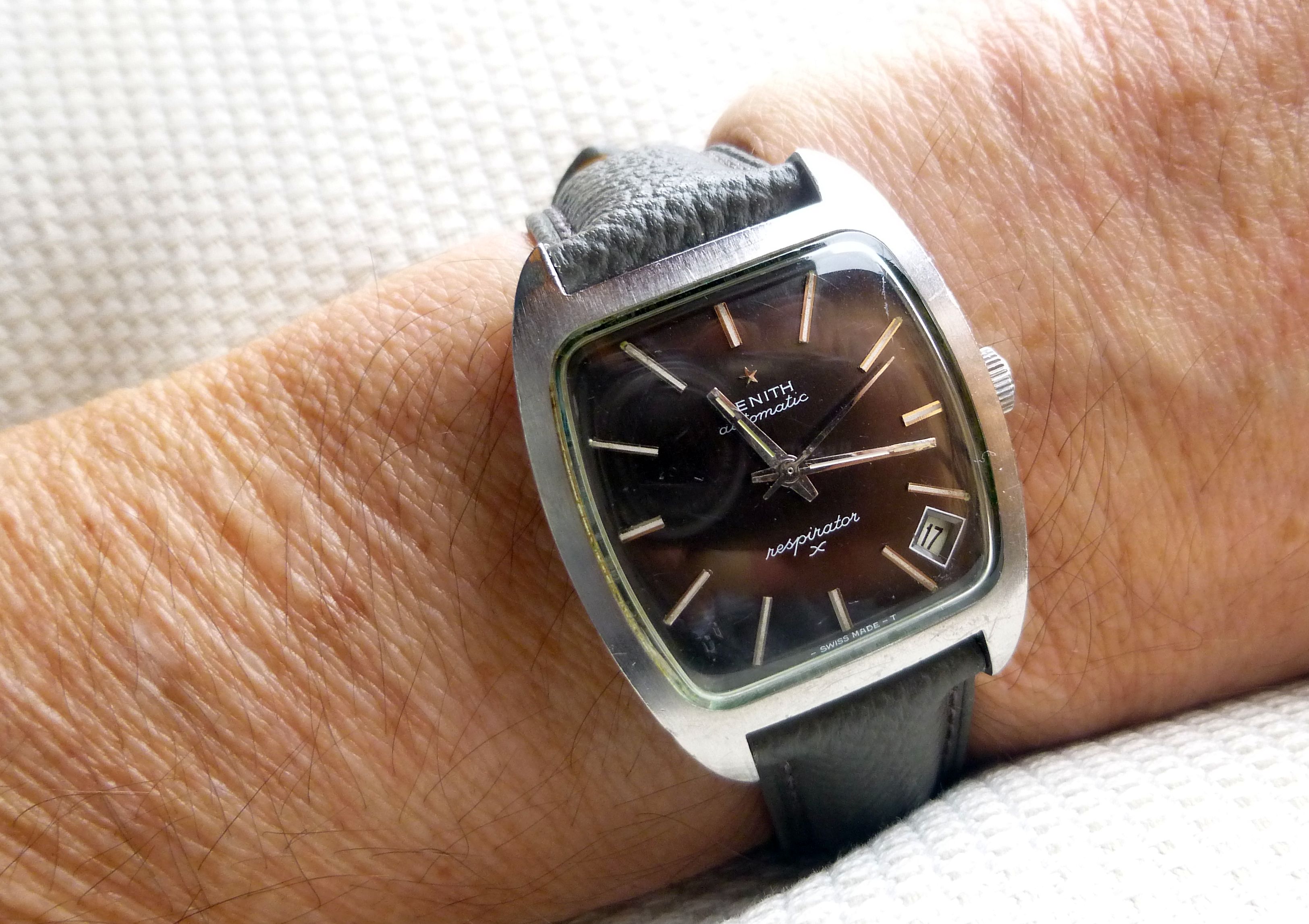 I'm looking at this vintage Zenith Respirator. I don't know anything about vintage Zenith but really like the design of this watch and it looks like it is in decent condition. Doesn't look like a redial either. Attempted to do some research but figured I'd get other opinions on the condition and what you think a fair price would be.