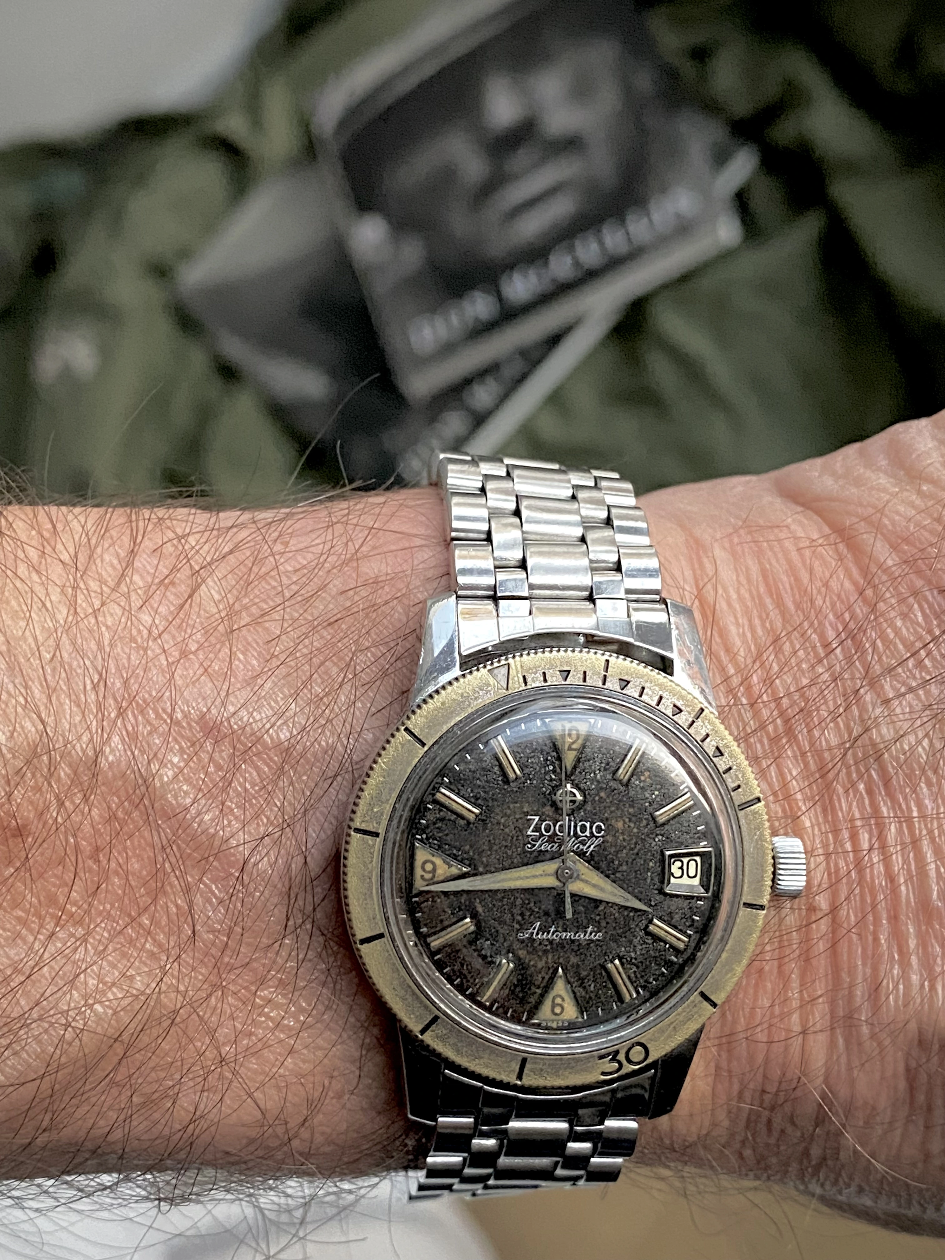 Next to this I see his watch: a Zodiac Sea Wolf. Seeing it and wanting it were one and the same.